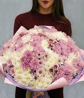 Букет из 51 кустовой хризантемы микс в стильной упаковке