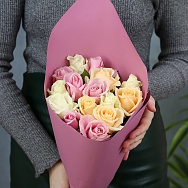 Роза Эквадор 50 см 9 шт., пленка 1 шт.,лента 1шт.