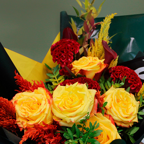 Красочный букет из роз подарит вам частичку теплоты и солнца даже в самый плохой день.