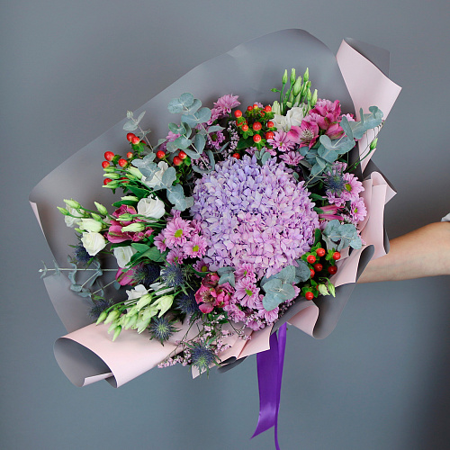 Красивый букет с гортензией подарит вам ощущение лёгкости и теплоты в любой день.
