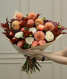 Букет из 13 роз 50 см (Эквадор) и 7 георгинов