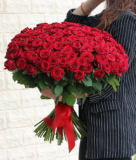Букет из 101 красной розы 50-60 см (Россия) Рэд Наоми