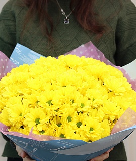 Букет из 25 желтых кустовых хризантем Бакарди в упаковке